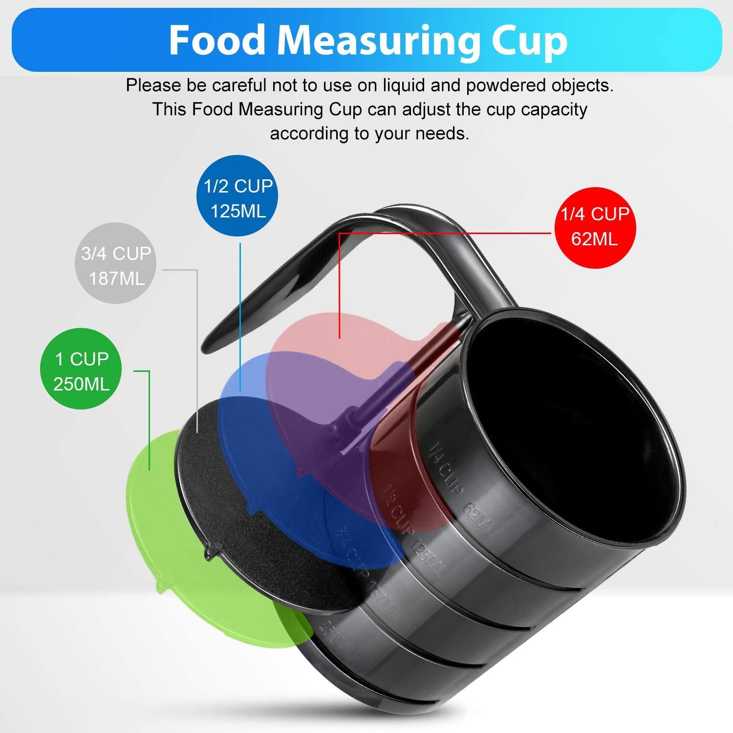 Este juego de tazas y cucharas medidoras es adecuado para todo tipo de partículas sólidas (un poco más grandes) para alimentos para perros, gatos o pájaros, también se puede utilizar en cocinas, granjas, etc. No puede contener objetos granulares en polvo ni líquidos, tenga cuidado.