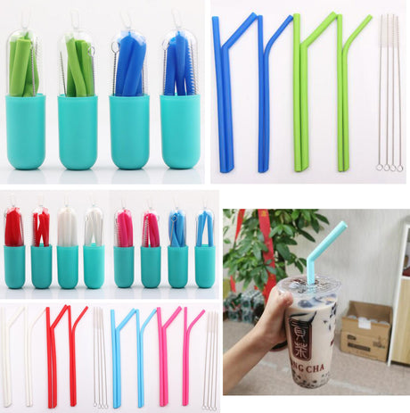 Paille pliable portable en silicone avec étui