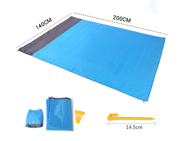 Ce tapis est fabriqué dans un tissu imperméable et résistant. Léger et imperméable, il se range dans une pochette assortie une fois plié. Il ne prend pas de place dans un sac à dos. Il est équipé de clous en plastique pour le fixer. Idéal pour le camping, la plage et les pique-niques.