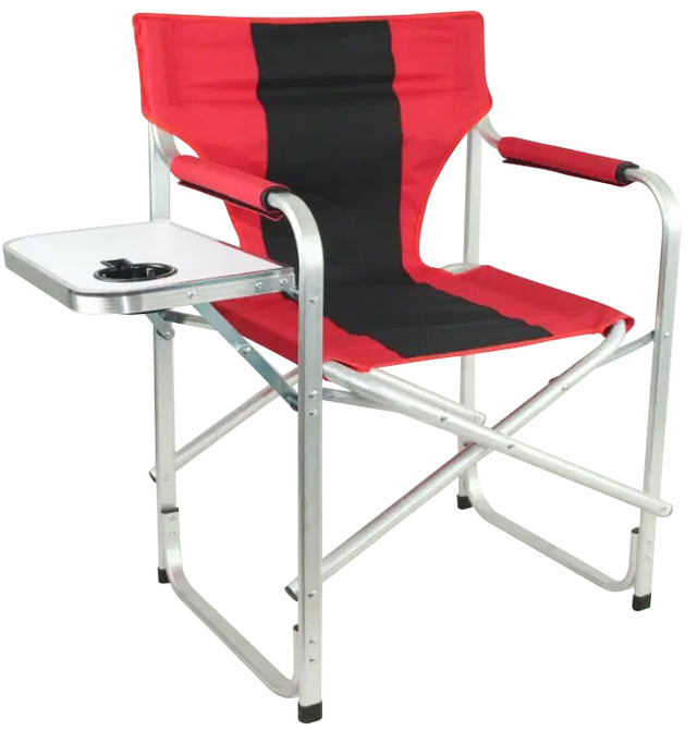Une chaise de réalisateur élégante comprenant une table d'appoint pliable avec porte-gobelet