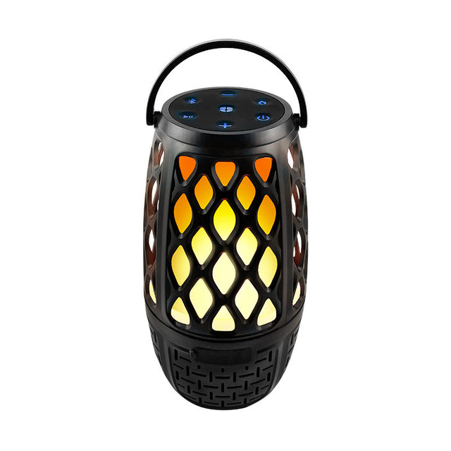 Enceinte d'extérieur sans fil avec flamme LED, Bluetooth, étanche, avec veilleuse LED scintillante et chaude, batterie 2000 mAh, idéale pour les voyages, les fêtes et la maison. Avec son ambiance de flammes dansantes extrêmement réaliste et naturelle, elle peut servir de veilleuse, de lampe d'ambiance ou de lanterne LED. Outre sa poignée de transport pratique, cette enceinte est livrée avec un piquet réglable en hauteur, un crochet et un support mural. Vous pouvez la poser dans votre jardin ou à la plage, l'accrocher à votre tente de camping, sur votre terrasse ou la fixer au mur.